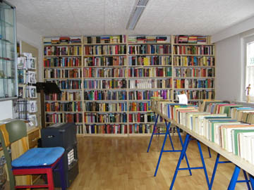 Die Romane, Anthologien, Erzählungen sind nach Autoren geordnet in angenehmer Umgebung leicht zu finden. Es kann in Ruhe bei einer Tasse Tee gestöbert und gelesen werden.