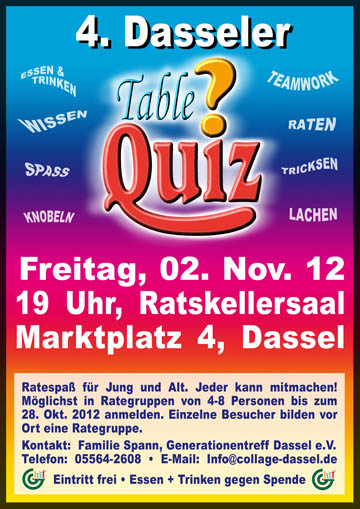 Eintritt ist frei. Der Generationentreff Dassel e.V. freut sich wieder auf einen fröhlichen Abend.
